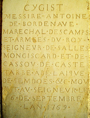 Pierre tombale de Saint-Boès (64) portant le nom d'un abbé laïque.