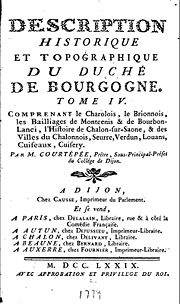• Courtépée (Claude). - Historien, né à Saulieu en 1721, mort en 1782, était prêtre, et fut régent, puis sous-principal au collège de Dijon.... (source : cosmovisions)