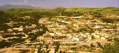 Panorama du monastère de Kumbum, et de son chorten en avant-plan