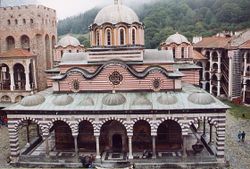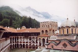 Le monastère de Rila fut fondé au X e siècle par saint Jean de Rila, un ermite canonisé par l'Église orthodoxe. Il est localisé dans les montagnes de Rila en Bulgarie, en un lieu spectaculaire dans les gorges de la rivière Rilski.