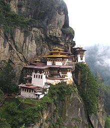 Taktshang est le plus célèbre des monastères bouddhistes du Bhoutan. Il est accroché à une falaise à 3 120 mètres d'altitude, à à peu près 700 mètres au dessus de la vallée de Paro.